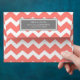Elegant peach orange pink, grey and white A7 greeting card envelope with stylish and retro chevron zigzags stripes pattern. Customize it with your return address. Available in matching cards and many other wedding products.