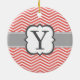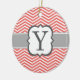 Coral White Monogram Letter Y Chevron Ceramic Ornament
