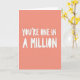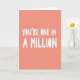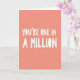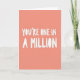 This card features the phrase “YOU’RE ONE IN A MILLION” centered and taking up most of the tall layout, like a close, affectionate note meant for one special person ❤️. The letters are white with softly rounded, slightly uneven edges that feel friendly and human, as if written with care. A faint shadow behind the lettering adds gentle depth, giving the words a lifted look without feeling heavy. The background is a warm coral-peach tone that sets a cozy, romantic mood, like a blush of color shared between close friends. The message sits in the middle with generous space around it, making the words easy to read and giving them room to breathe. The text is arranged in stacked lines, with “YOU’RE” above “ONE IN A” and “MILLION” below, all aligned to feel balanced and steady. A small 🌼 would fit naturally beside the phrase, echoing the soft, affectionate feel of the color palette. The overall look is a smooth coral field with crisp white lettering and a delicate shadow that subtly outlines each character.