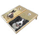 Natural Wood Cornhole Set, Yellow and Purple bags