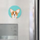 Whimsical Welsh Pembroke Corgi Dog Art Magnet. Click the Customize button to change the background color to match your kitchen, or to add your own special text!