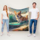 Corgi Beach Surfing Painting Fleece Blanket
