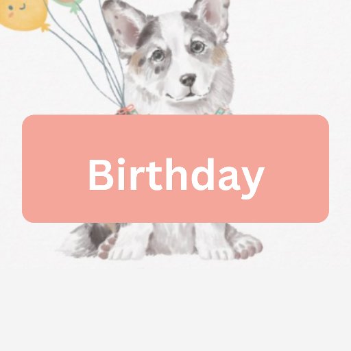 Customizable birthday wrapping paper, featuring a blue corgi pattern with a confetti background. Use the template to edit the text to add in the birthday boy/girl name. You can also edit it further by adding in a background color to your liking.