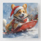 Corgi Dog in Sledge Let it Snow Christmas Square Wall Clock
