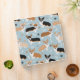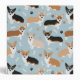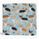 Cute Corgi dogs with fawn, red and tri coat colors with paw prints and dog bones pattern.