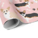 Cute Corgi dogs with fawn, red and tri coat colors with paw prints and dog bones pattern.