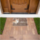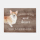 Funny beware of the wet kisser" Corgi Dog door mat set on a rustic faux background. Visit our shop to view a large assortment of dog breads