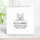 Simple cartoon illustration of a happy corgi peeking from behind a divider. Only its head and front paws are visible. Customize with your own address.