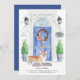 Announce your new address with our stylish announcement featuring a Corgi, blue front door, welcome mat, slate sign, topiaries and a floral wreath set on a gray brick background.