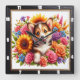 This delightful wall clock features an adorable Corgi puppy surrounded by a vibrant array of sunflowers and roses. Its charming and colorful design brings a touch of garden-inspired joy to any room, making it a perfect decorative timepiece for pet lovers.