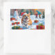 Corgi Running in Snow with Christmas Hat Rectangular Sticker