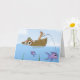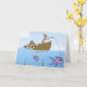 Great bit of dog humor for Father's day! A father and son Pembroke Welsh Corgi are fishing in a lake - and apparently the puppy has hooked a big one! The rowboat is throwing a huge wake behind it as the purple fish drags them through the water, and the corgi puppy couldn't be more delighted! A smaller fish (the son) points and laughs at the daddy corgi, who is peering down anxiously into the water. Funny Pembroke Welsh Corgi card for pet owners. The inside reads, "Happy Father's Day!" An original corgi animation by Susan Stoneman. All Rights Reserved.
