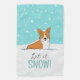 Cute seasonal garden flag with Pembroke Welsh Corgi in the snow. Let it Snow! Text can be personalized for an original gift. A fun holiday flag for Corgi lovers.