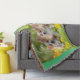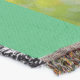 A quality printed throw has its advantages. This is a much finer weave throw than its loopier cousins, and though lighter, it is worth the investment for custom room accessorizing. The back is much prettier than the typical brown, and the fringe on the long sides very vivid, the selvage nicely done. Before photographing, I washed the throw in cold water, delicate, with a thicker woven throw the same size. On tumble dry low, this throw was dry in half the time as the other. This is a very practical quality if you use throws for furniture covers or to wrap up in frequently. The sleekness of the fabric makes it a great layer for accenting or protecting without the feeling of sitting on too much stuff. Perfect for napping or when you feel a light chill coming on. The color printing is beautiful and on this fabric, matched the design and color of my Photoshop image. This is an advantage for blending room fabrics and colors. The fringe on the short sides prints the colors from the design image and therefore varies from the side fringe. I streaked a white fractal line through the plaid pattern to give the illusion of weaving. This printed as crisp as an illusory thread, and put some white in the short side fringe, showing another advantage of print vs loomed- for artistic purposes, line lines, detail, and color integrity can be planned and preserved. My loomed throws have color limitations and more of a needlepoint texture. Print throws reproduce an exact image. The throw felt a little stiff straight out of the package, but this went away in the first delicate wash. Of course I searched the wash water for ink or bleeding and there was none.