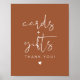 This cards and gifts sign features an edgy handwritten font, modern minimalist design, and a terracotta and burnt orange and white color combination. Use this template to edit the fonts, font color, and background color to match your event needs. Pair with additional items from the CORIANDER Collection for a cohesive look.