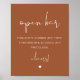 This open bar sign features an edgy handwritten font and modern minimalist design with a bohemian terracotta and white color combination. Easily change the font and background color to match your event. This is perfect for a wedding, couple's shower, bridal shower, engagement party or any other special event.