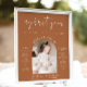 This first birthday milestone board features an edgy handwritten font and modern bohemian teracotta coloring with a cute arched photo in the middle. This year one highlight poster is perfect for your boy or girl birthday party. All colors are editable! Click the blue 'edit using design tool' button in the personalization section to use the full editor.