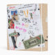 A mini binder originally designed for originating trading cards can be used for anything! This cork board inspired styled binder is covered in notes, doodles, and pictures ensured to give you nostalgia.