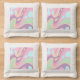 They are a decent material but the stitching to seal them is not how the photo makes it look. I received these for my wedding in two weeks and they pink and green bags are stitched closed with white thread and it looks either rushed or that the quality wasn't really important. Some of the stitching is already coming apart and I just opened the box. The printing on the bags is poor quality. Some of the bags look like it has been double pressed or done over another.