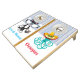 Natural Wood Cornhole Set, Yellow and Purple bags