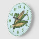 Corn cobs kitchen wall clock for your home. Blue and green wall clock featuring an illustration of two corn cobs makes a nice kitchen decor. Great for a farmhouse, a home of corn farmers, or just a fun decorative clock for a corn lover's kitchen or dining space.