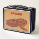 This lunchbox features a realistic style illustration of a coiled corn snake in dark red and orange. It's ready to be personalized with a name in reddish orange lettering. Makes a great gift for pet snake owners.