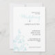 White wedding invitation with delicate light blue floral design in bottom corner of card. Colors and text are completely customizable online with a few clicks but if you need help customizing color or editing the text contact designer at ArtByLiz@gmx.com and card will be customized for you at no extra charge.