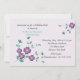A charming invitation featuring two sprays of corner posies in a deep purple hue with teal branches and leaves. Suitable for any age female.
