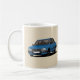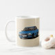 Blue French classic car from the 80's. Two blue Peugeot 505 car illustrations on a coffee mug. Great gift for retro Peugeot fans. Customize mug style and background color.