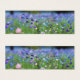 A field of cornflowers in shades of deep and pale blue, purple, lavender, and pink, with pale green leaves.