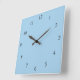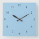 Pretty kitchen wall clock of a light blue known as cornflower blue. Twelve black numbers on a plain blue background. Perfect addition for a kitchen with a blue color scheme