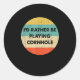 Cornhole I'd Rather Be Playing Cornhole Classic Round Sticker
