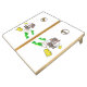 Natural Wood Cornhole Set, Yellow and Purple bags