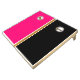 Natural Wood Cornhole Set, Yellow and Purple bags