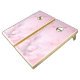 Natural Wood Cornhole Set, Yellow and Purple bags