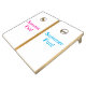 Natural Wood Cornhole Set, Yellow and Purple bags