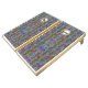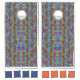 Cornhole and Bag Toss Set with an oriental design in blue, green, orange and a touch of hot pink.