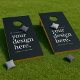 Natural Wood Cornhole Set, Royal Blue and Yellow bags