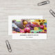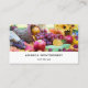 Business cards with a photograph of a table filled with natures bounty. Set with cornucopia, and colorful harvest vegetables and fruits.
