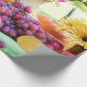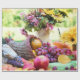 Wrapping paper with a photograph of a table filled with natures bounty. Set with cornucopia, colorful harvest vegetables and fruits.