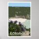 CORNWALL Vintage Style Poster - Porthcurno beach scene