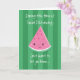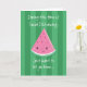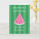 During this time of social distancing, this cute card will bring a smile and them know you are thinking of them. A pun on the watermelon slice, lets someone know they are “one in a melon!” A juicy watermelon piece has a smile and stands out against the green striped background.