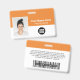 Easily personalize this Custom Employee Name Badge with Photo, Scan Bar Code and business company logo, featuring persons name, occupation, optional identity bar code, with metal clip included. A branded badge useful to identify staff, visitors or guests, docror, nurse and medical professions. A simple business design with large photo in tangerine orange and white fully customizable in front and back sizes, in any color background, sans-serif basic and modern fonts and a professional and clear look. An useful tool for corporate events, reunions, renews and celebrations. Create more corporate photo badge identification card in different colors for any category you need to identify: staff, visitors or guests. Avaiable with or without lanyard, metal clip or with retractable. No minimum order.