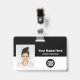 Easily personalize this Custom Employee Name Badge with Photo, Scan Bar Code and business company logo, featuring persons name, occupation, optional identity bar code, with metal clip included. A branded badge useful to identify staff, visitors or guests, docror, nurse and medical professions. A simple business design with large photo in black and white fully customizable in front and back sizes, in any color background, sans-serif basic and modern fonts and a professional and clear look. An useful tool for corporate events, reunions, renews and celebrations. Create more corporate photo badge identification card in different colors for any category you need to identify: staff, visitors or guests. Avaiable with or without lanyard, metal clip or with retractable. No minimum order.