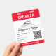 Command attention at your next tech summit with this Red Corporate Event Speaker QR Code ID Badge, designed for high-visibility and seamless networking. This professional vertical badge features a bold red header and footer that instantly identifies the "SPEAKER" or specific roles like VIP and staff. The clean white center provides ample space for your company logo, name, and job title, while the integrated QR code allows for instant digital contact sharing or session check-ins. Made from durable, high-quality materials, this fully editable template is the perfect identification solution for IT conferences, trade shows, and corporate seminars looking for a modern, high-energy aesthetic.
