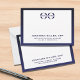 Double-sided timeless custom flat note card design features a simple clean professional design with company logo at the top, name, title and company in the lower thirds, framed in navy blue. Classic block typography that can be personalized with your name, title, company or custom text of your choice. Space for your handwritten note is included on the front and back.