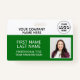Represent your business in style by supplying staff with with modern and professional identification badges. Uploading your company logo, 1 square employee photo, and your security barcode is easy and quick. Using the templates for your company name, employee name and job title/division/team, employee ID#, and expiration date is simple and straightforward. The green and white design is classic. It can provide security for company staff while presenting your corporate branding with a stylish classic appearance.