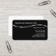 Classy corporate professional business card design in classic black with cool silver digital metallic design elements and organized layout Replace the text fields with your own business information for a customized design. Created for an office professional, business management, or corporate entity. Presented on rounded corner high quality paper stock.