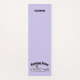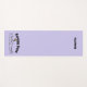 Light purple yoga mat with black outline graphics of a corpse holding a flower. Black arched text, above the body reads, Corpse Pose (yoga pose). The other end of the mat has black custom text, personalize to suit your needs.