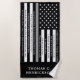 Correctional Officer's Prayer Beach Towel in a modern thin gray line American Flag in correctional officer flag colors. This correctional officer prayer beach towel is a unique gift and is perfect for all correctional officers, probation officer and parole agents, law enforcement, correction academy graduation gift, and correctional officer gifts. Personalize this correctional officer beach towel with your correctional officers name. Correction Academy Graduate Prayer.